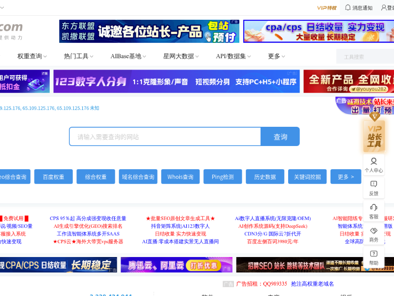 站长之家,作为一款面向站长的实用工具,旨在为站长们提供便捷功能和丰富资源,帮助他们更好地管理和优化自己的网站。在当今互联网时代,拥有一个优秀的网站不仅提升个人或企业形象,还实现更多商业价值。站长工具 - 站长之家,作为国内领先的互联网站长服务平台之一,为站长们提供了全方位的站长工具和资源,从网站建设到数据分析,都能满足站长们的需求。 站长之家的优势在于涵盖了网站管理的各个方面,让站长们能便捷进行网站优化和管理。其提供的网站分析工具可以帮助站长们了解网站数据,便于进行优化。同时,关键词排名查询工具可以帮助站长们制定SEO策略。另外,网站安全检测工具和网站备案查询工具也让站长们更加安心地运营网站,保障信息安全。网站监控工具则可帮助站长们及时发现问题并处理,确保网站正常运行。 总的来说,站长工具 - 站长之家,为站长们提供了丰富实用的工具和资源,助力他们打造优秀网站。作为喵资源网的一员,我们将持续关注站长工具的进展,为站长们提供更多更好的服务,愿站长之家成为每位站长的得力助手,帮助他们在互联网世界中蓬勃发展。